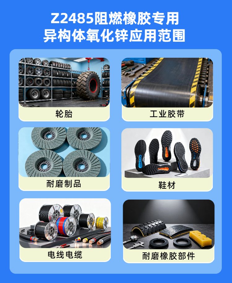 (特定條件下)在燃燒過(guò)程中可能有助于一定程度上減少煙霧的產(chǎn)生。同時(shí),氧化鋅具有良好的導(dǎo)熱性,有助于橡膠制品(如輪胎)的散熱。