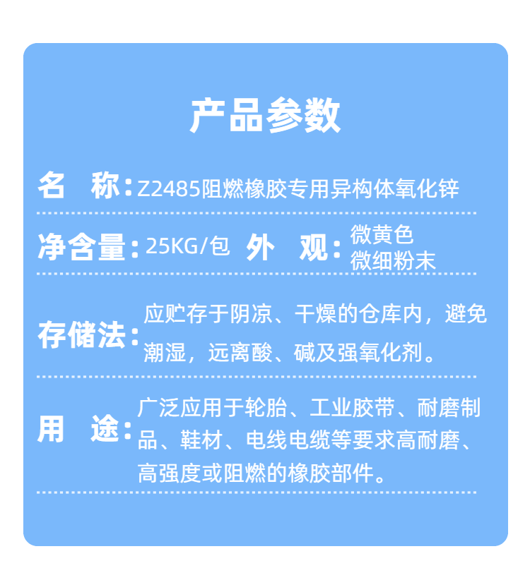 Z2485阻燃橡膠專(zhuān)用異構(gòu)體氧化鋅